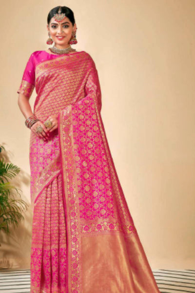 Become the most beautiful woman on any occasion in this captivating silk Saree. It will lend you an elegant look. These enthralling sarees are designed keeping in mind the quintessential Indian woman. The graceful border and luxurious fabric transform this saree into a ravishing and charming piece that is perfect for every occasion.