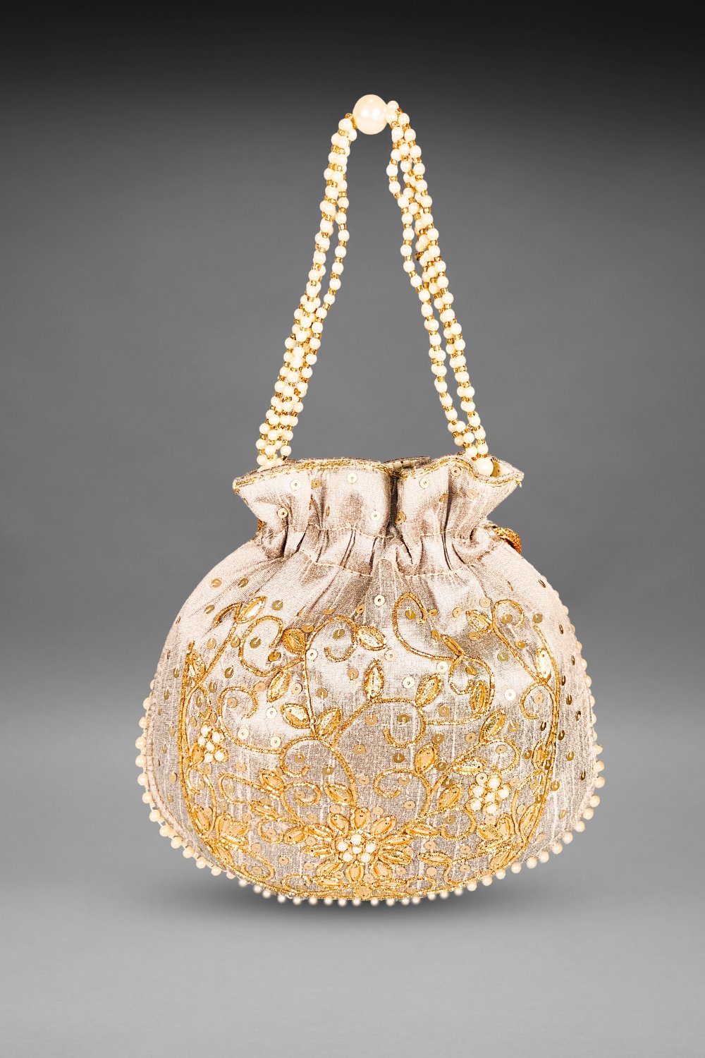 Elevate Your Style with a Grey Pearl Work Potli Bag